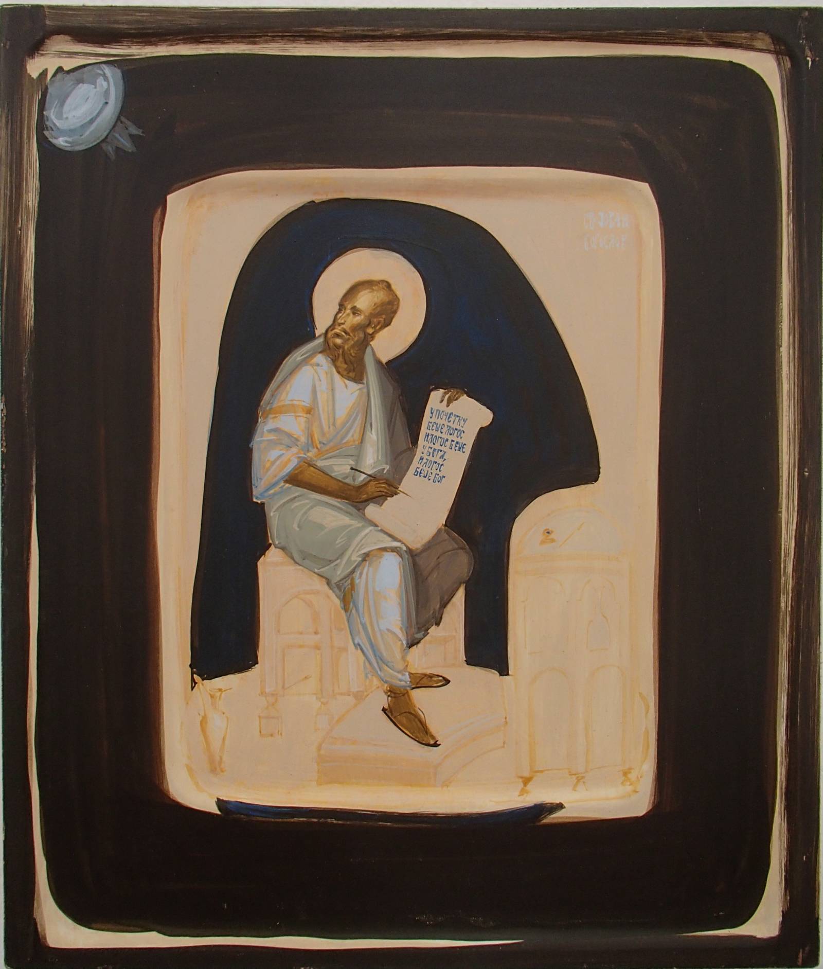 Svetlana Volic: Dans le sens esthético-pictural, vos icônes ont gardé la fraîcheur de l’esquisse – de l’expression rapide et spontanée, une certaine dose d’inachevé ou d’espace de possibilités ouvert est présente. Y a-t-il une raison ontologique supplémentaire à cette approche?