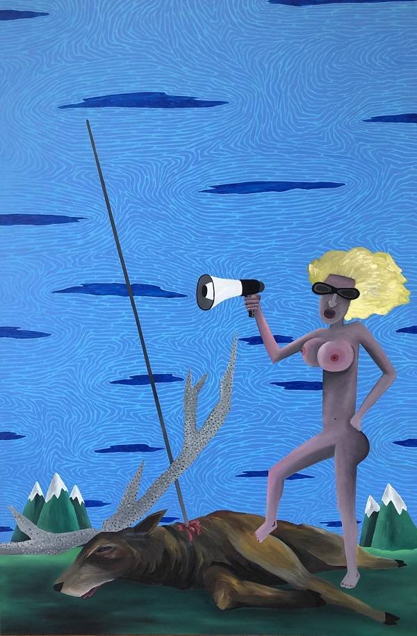 Cette virtuose de l’imprévisible définit son travail comme de la « Figuration éclectique », un art protéiforme, nourri d’influences théâtrales et photographiques, qui réunit le symbolisme, le tachisme, la géométrie, la perspective sur différents plans, un usage des couleurs et des images convoquant le pop art, la bande dessinée et des slogans dont elle se sert pour passer des messages. À l’aide du dessin, de la peinture et du collage, elle creuse sur ses toiles des récits tantôt composés d’éléments autobiographiques, tantôt de faits divers, enchevêtrés à des formes abstraites, pulsionnelles et mentales.