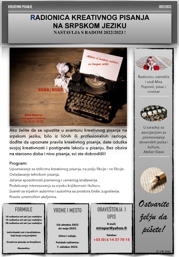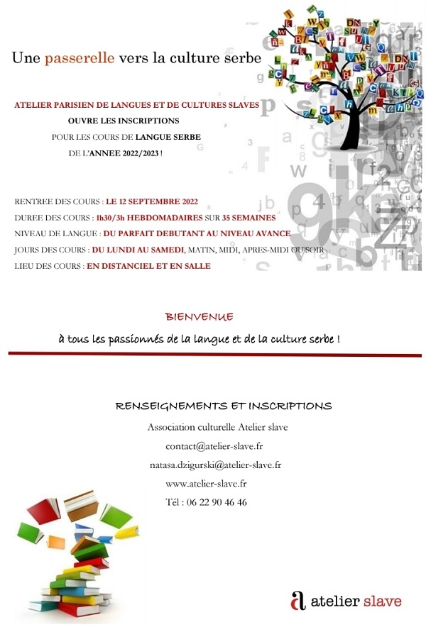 Formation à distance L’Université Bordeaux Montaigne propose, pour l’année 2022/2023, une formation à distance en langue Serbe de niveau B1, selon les critères définis par le Cadre Européen Commun de Référence en Langues (CECRL). Public visé Toutes les personnes - étudiants, salariés, demandeurs d’emploi, retraités… - intéressées par la Serbie et l’ex-Yougoslavie mais aussi les candidats qui souhaitent acquérir un atout professionnel qui pourrait s’avérer essentiel dans leur recherche d’emploi. Conditions d’accès à la formation Être majeur et avoir une connaissance du serbe équivalente au niveau A2 (consolidation). Objectifs Ouvrir la formation à ceux qui n'ont pas la possibilité de suivre les cours Permettre aux personnes bilingues qui n’ont jamais suivi des cours de serbe de préparer / ou de passer une certification universitaire qui validerait ainsi officiellement leur connaissance de cette langue. Durée de la formation du mois d'octobre 2022 au mois d'avril 2023. Le programme orienté sur les exercices (compréhension et expression écrites et orales, grammaire) Obtenir un Certificat universitaire de langue serbe Cette formation peut être complétée (mais ce n’est pas obligatoire !) par la certification CLUB Montaigne Serbe de niveau B1. Inscription Les inscriptions à la formation à distance et à la certification sont indépendantes l’une de l’autre. - Formation à distance : jusqu’à fin septembre 2022 - Certification CLUBM : jusqu’à fin septembre 2022 Rendez-vous sur le site internet pour en savoir plus sur les tarifs et pour télécharger votre dossier d'inscription :http://ubxm.fr/clbm Renseignements Université Bordeaux Montaigne КУРСЕВИ СРПСКОГ ЈЕЗИКА ЗА СВЕ НИВОЕ